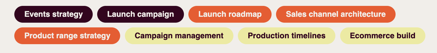 Studio and lifestyle photography. Events calendar. Production timelines. Launch campaign. The influencer dinner.